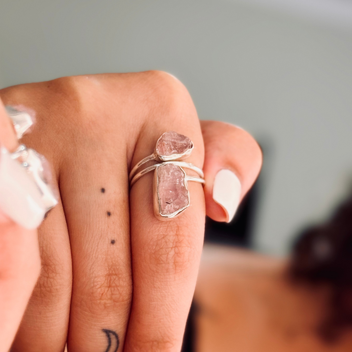 Perfeito para quem ama joias com um toque mais natural e energético, o Anel Quartzo Rosa Bruto Duo é ideal para quem busca beleza, autenticidade e um significado profundo em cada detalhe.